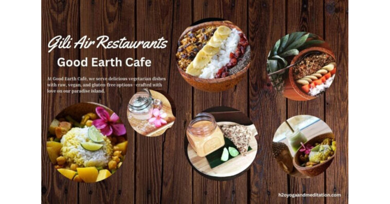 Discover Gili Air Restaurants at H2O Yoga and Meditation Center. Enjoy fresh, flavorful meals and stunning views at Good Earth Cafe.